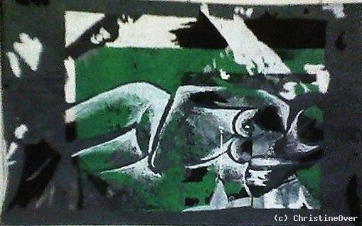 Siebdruck Scherenschnitt/Kohle auf Pappe |