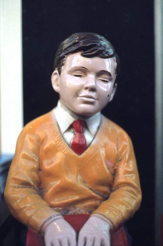 These dolls used to be found dotted around London in the 70s. They were small sculptures placed in the street as collection boxes for charities. Coming across one of them as you wandered through the city was a strange, eerie experience. |