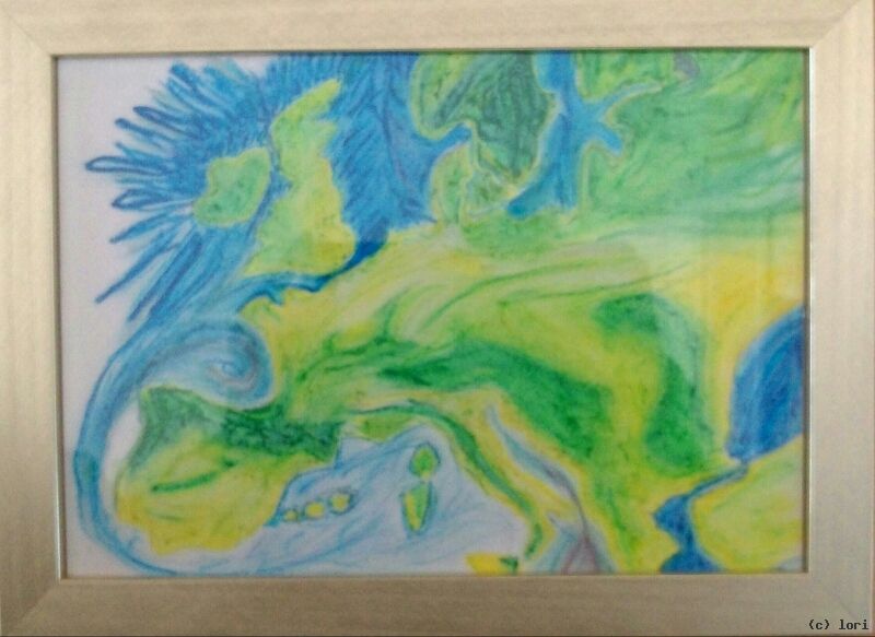 "Die Ströme" entstand 2012 aus aktuellem Anlass zur EU Krise in Ölkreide auf Papier, gerahmt Holz/Glas |