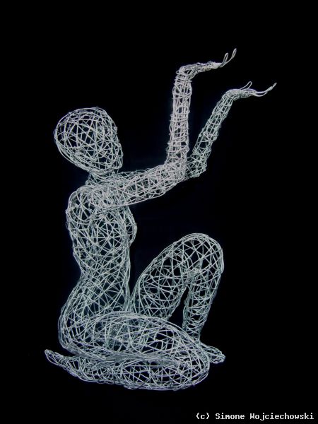 Skulptur aus Draht in einem einzigartigem Strick-Knot-Verfahren angefertigt. Die Figur ist innen hohl. |