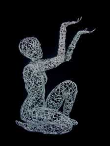 Skulptur aus Draht in einem einzigartigem Strick-Knot-Verfahren angefertigt. Die Figur ist innen hohl. |