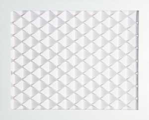 Lines of Sight - Sichtlinien Werkgruppe: Korrugationen, bedruckt Kunstart: Skulptur Technik: Relief Stil: Op Art / Hard Edge 45 x 55 x 3 cm 21,7 x 17,7 x 1,2 in Jahr: 2014 Signatur: hinten signiert