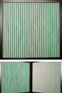 handgefaltete Korrugation aus hochwertigem, alterungsbeständigem, bedrucktem Einbandpapier im Spezial-Vollholzrahmen |