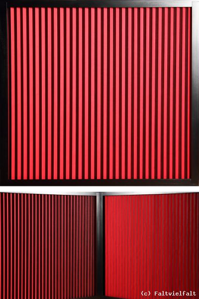 Redshift - Rotverschiebung Werkgruppe: Korrugationen, handkoloriert Kunstart: Skulptur Technik: Relief Stil: Op Art / Hard Edge 70 x 75 x 3 cm 29,5 x 27,6 x 1,2 in Jahr: 2015 Signatur: hinten signiert