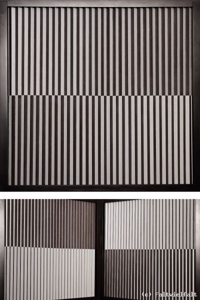 handgefaltete Korrugation aus hochwertigem, alterungsbeständigem Einbandpapier, handkoloriert, im Spezial-Vollholzrahmen (Hinweis: Das Foto zeigt dasselbe Relief aus verschiedenen Blickwinkeln: oben mitte = Frontalansicht; unten links = Ansicht von links; unten rechts = Ansicht von rechts)