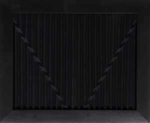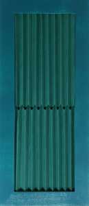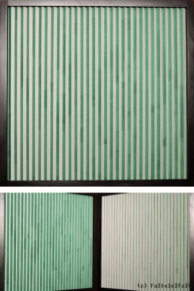 Titanium Green - Titangrün Werkgruppe: Korrugationen, handkoloriert Kunstart: Skulptur Technik: Relief Stil: Op Art / Hard Edge 70 x 75 x 3 cm 29,5 x 27,6 x 1,2 in Jahr: 2016 Signatur: hinten signiert