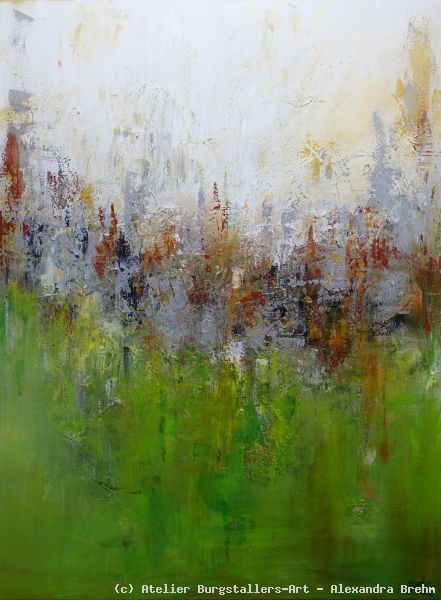 Mehr zum Gemälde unter: ***www.burgstallers-art.de*** Abstraktes Kunstbild, grün, silber, braun, Strukturbild, moderne Kunst. Professioneller Kunstversand | Auftragsmalerei | langjährige Erfahrung als hauptberufliche Künstlerin. |