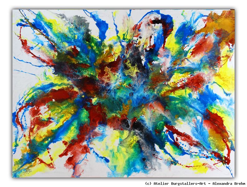 Mehr zum Gemälde unter: ***www.burgstallers-art.de*** Colourful, abstraktes buntes Gemälde, Fluid Art, moderne Kunst. Professioneller Kunstversand | Auftragsmalerei | langjährige Erfahrung als hauptberufliche Künstlerin. |