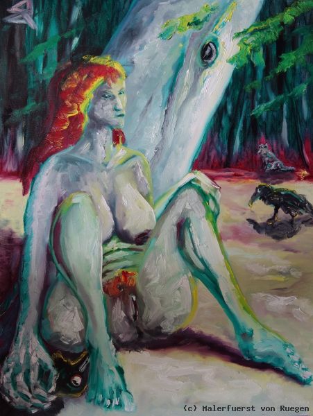Freija auf der Lichtung Kunstart: Malerei Technik: Ölmalerei Stil: Gegenständlich 60 x 80 x 2 cm 31,5 x 23,6 x 0,8 in Jahr: 2025 Signatur: vorne signiert