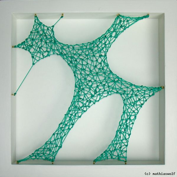 Aus grünem, 1,2mm starken Kunststoffgarn gefertigtes Netzobjekt. |